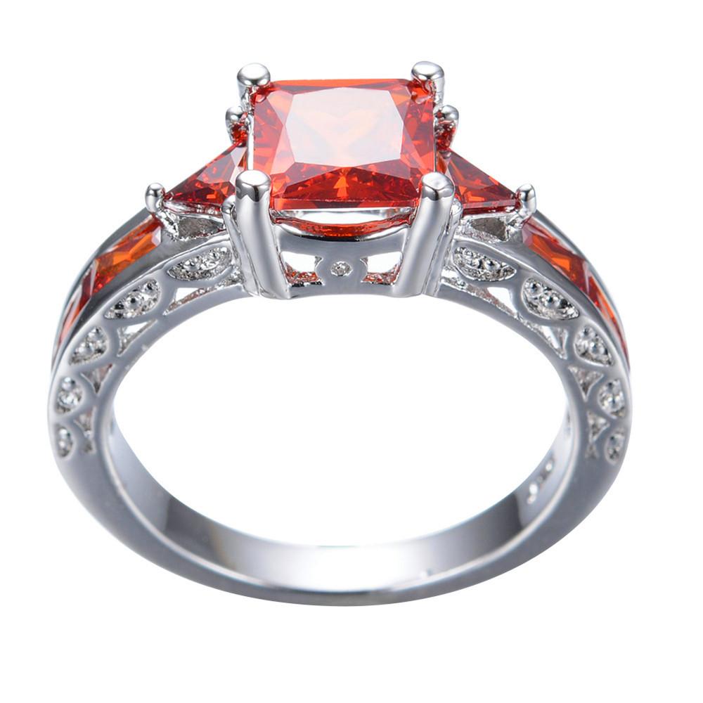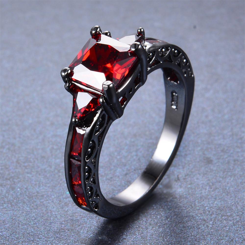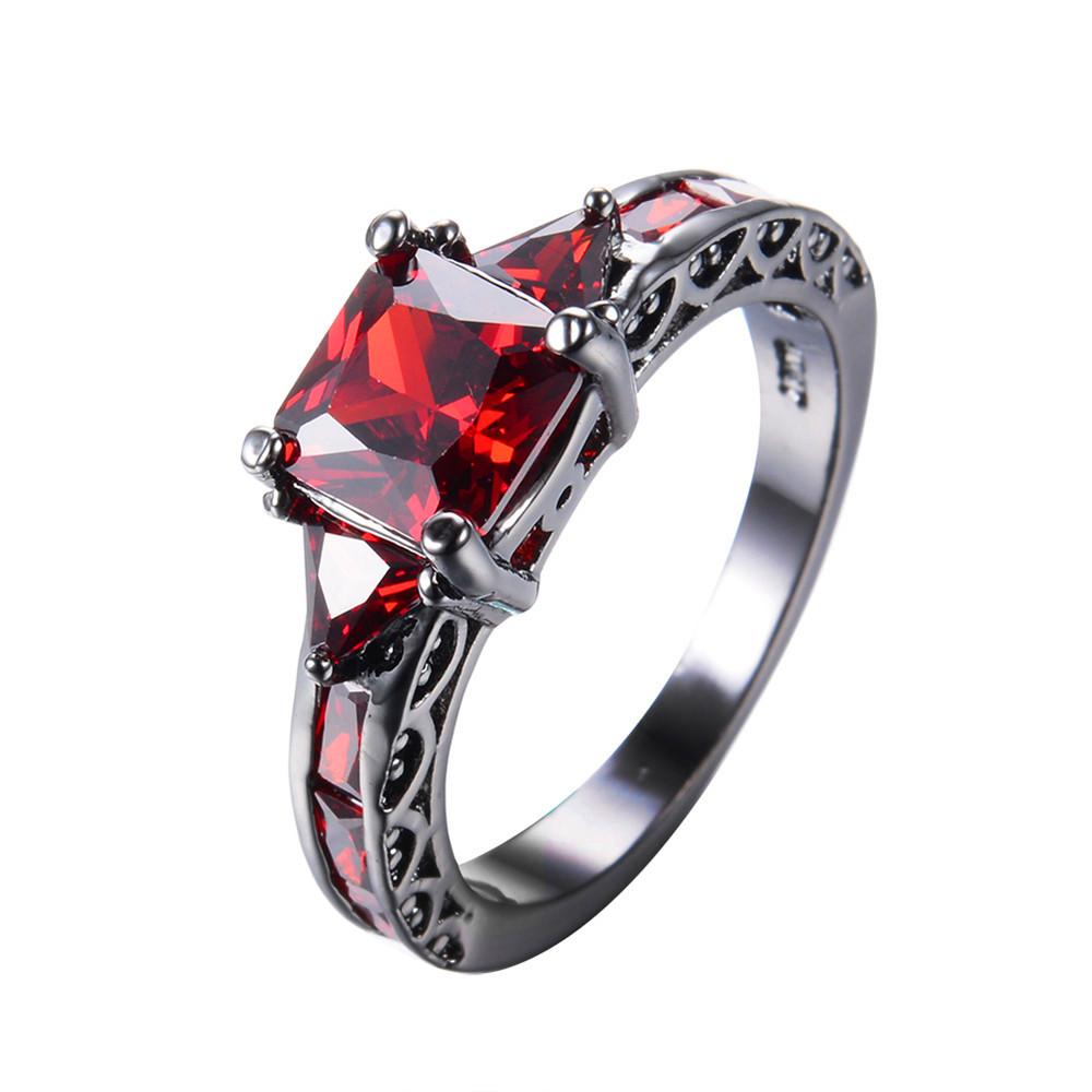 Women Red Ring Earrings Jewelry Set(January Bir...