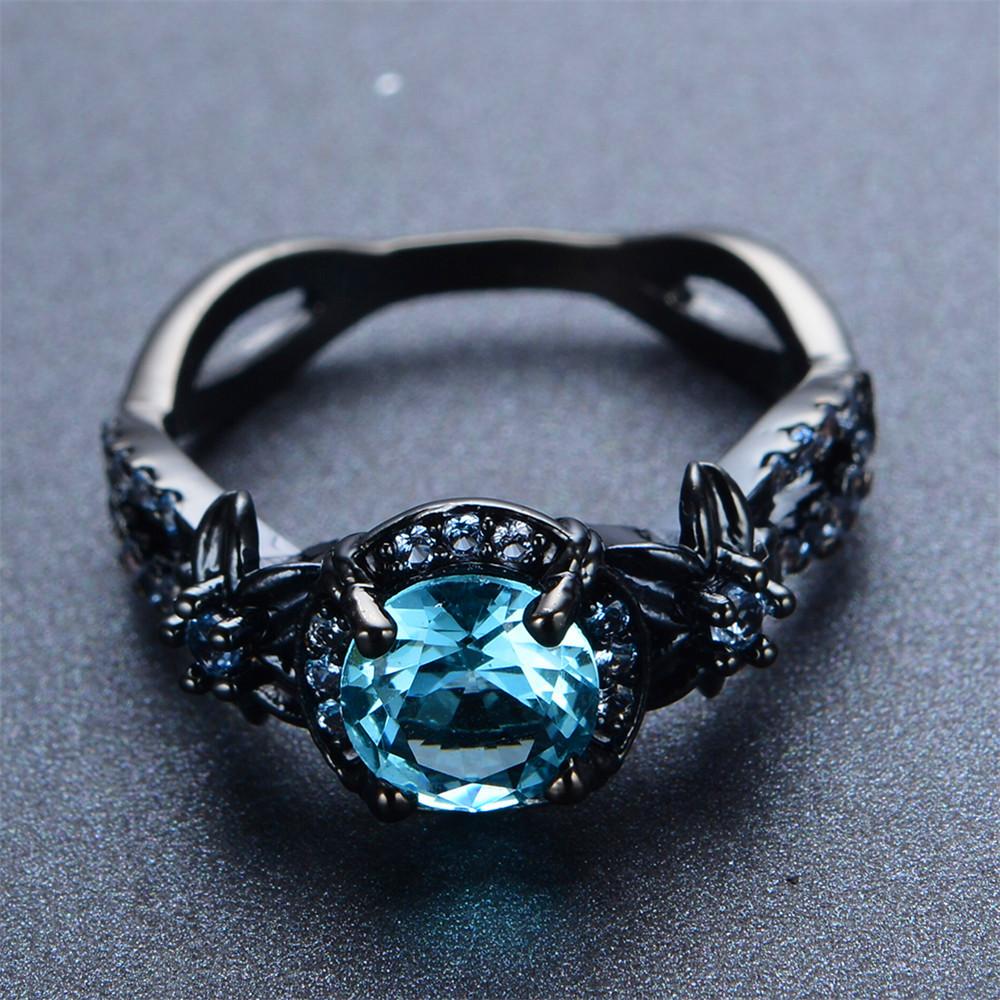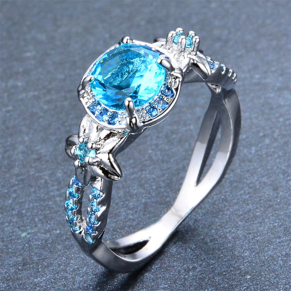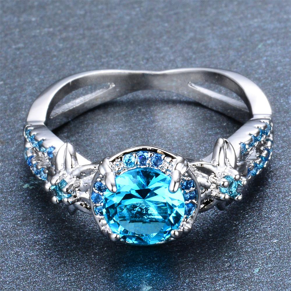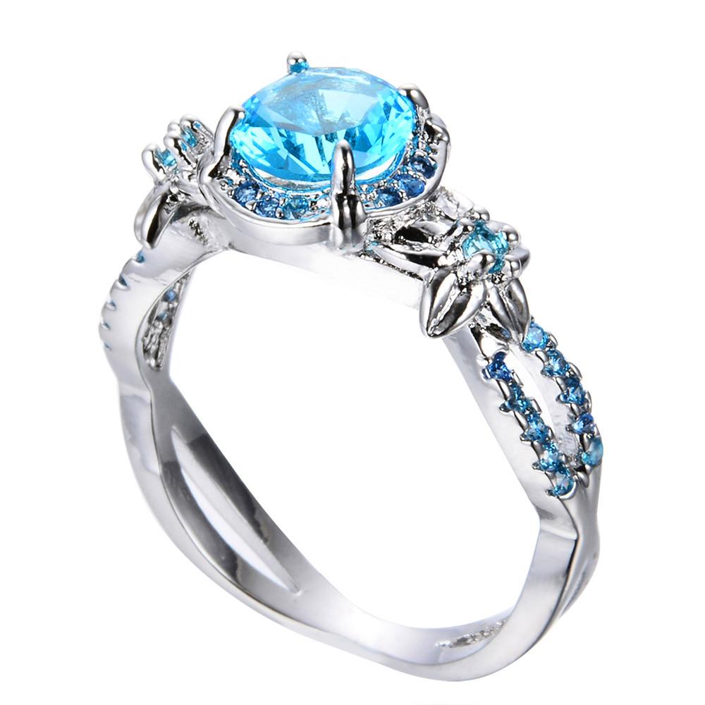 Women Geometric Blue Topaz Ring Earrings Jewelr...