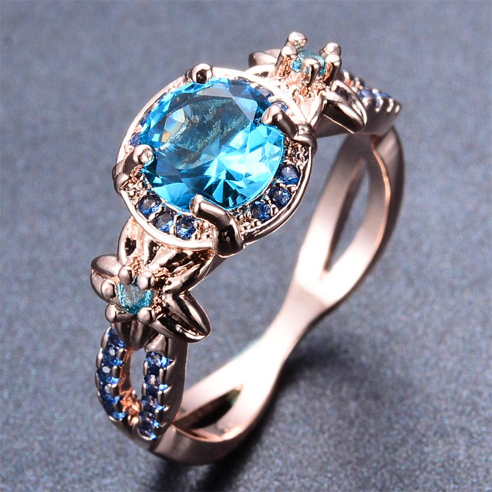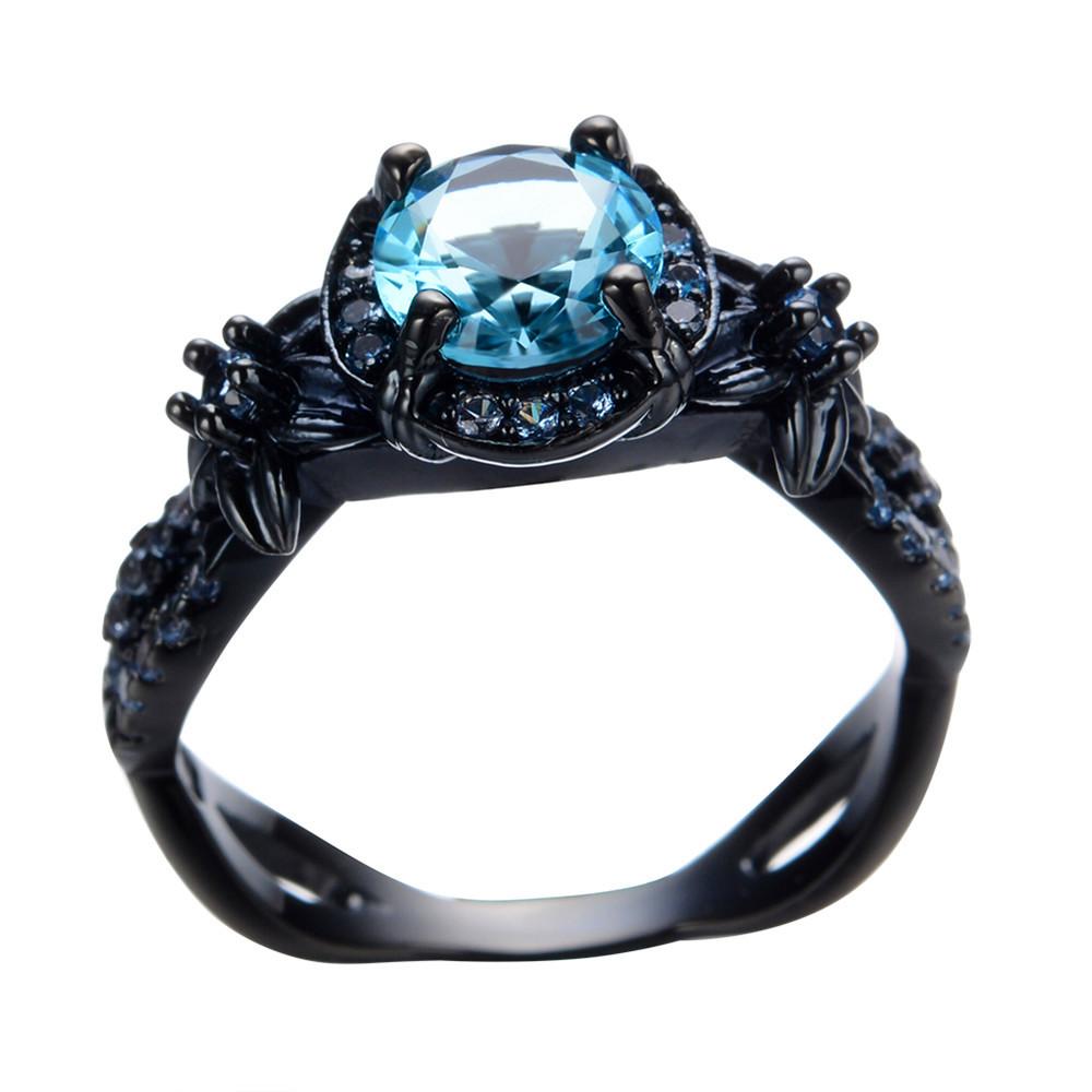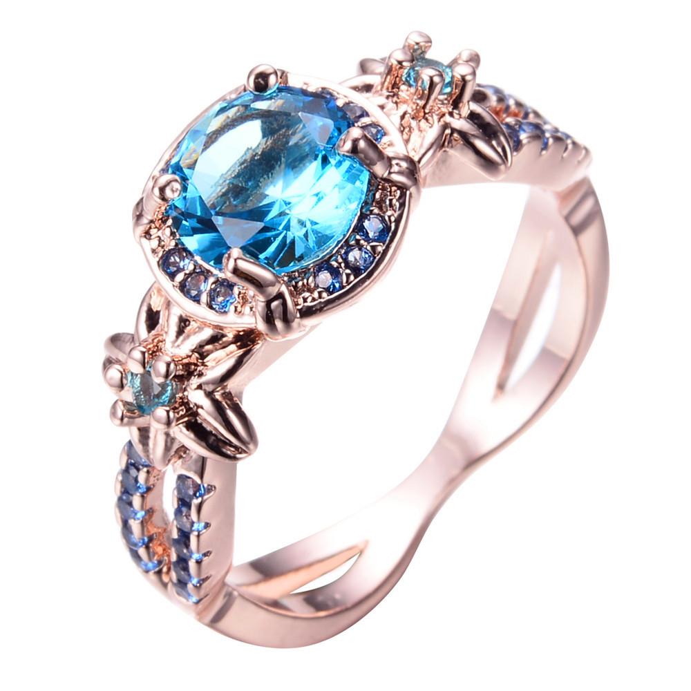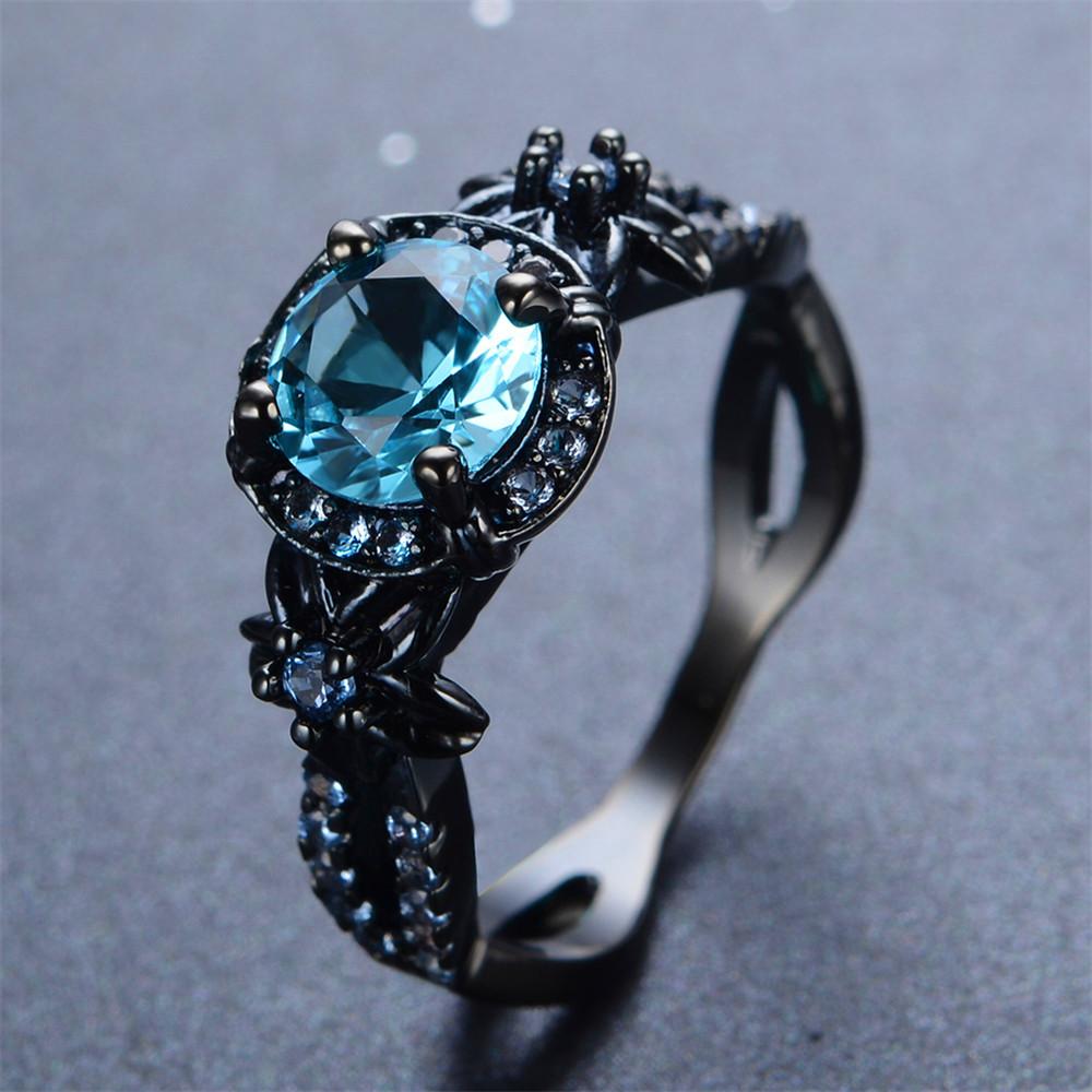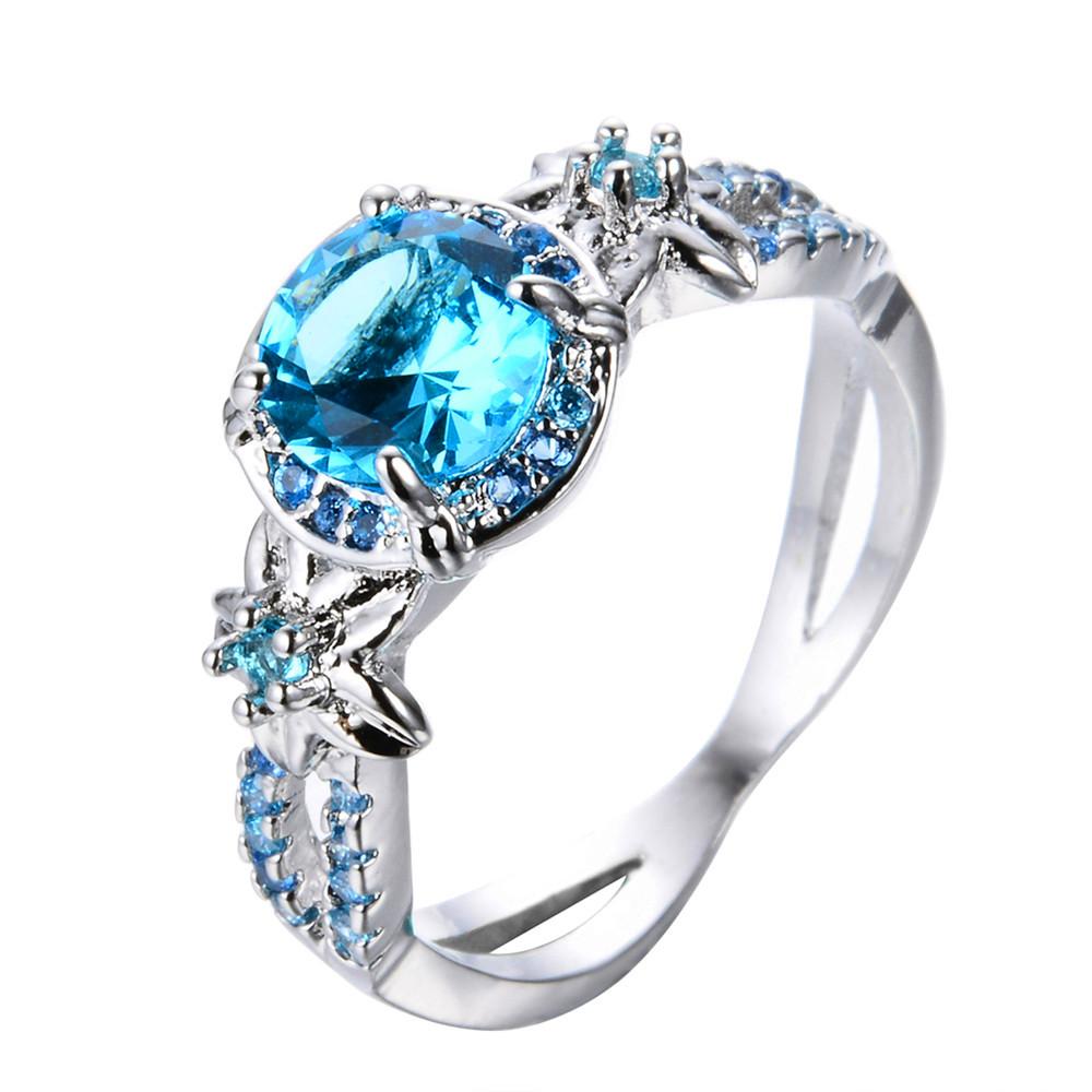 Women Geometric Blue Topaz Ring Earrings Jewelr...