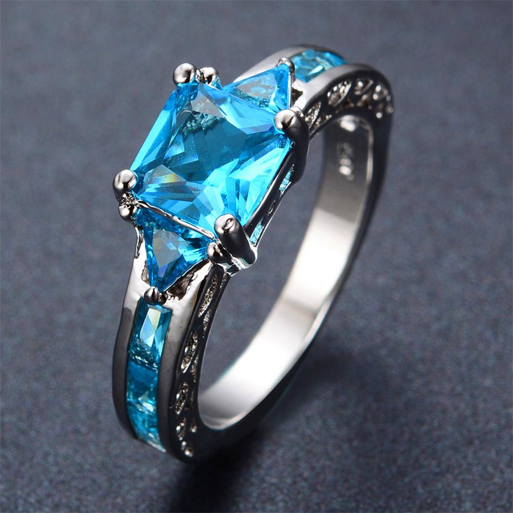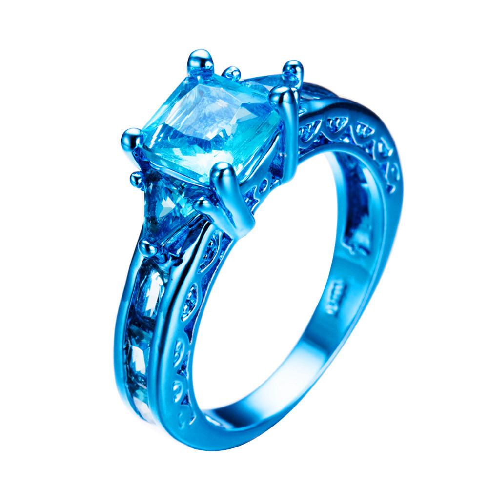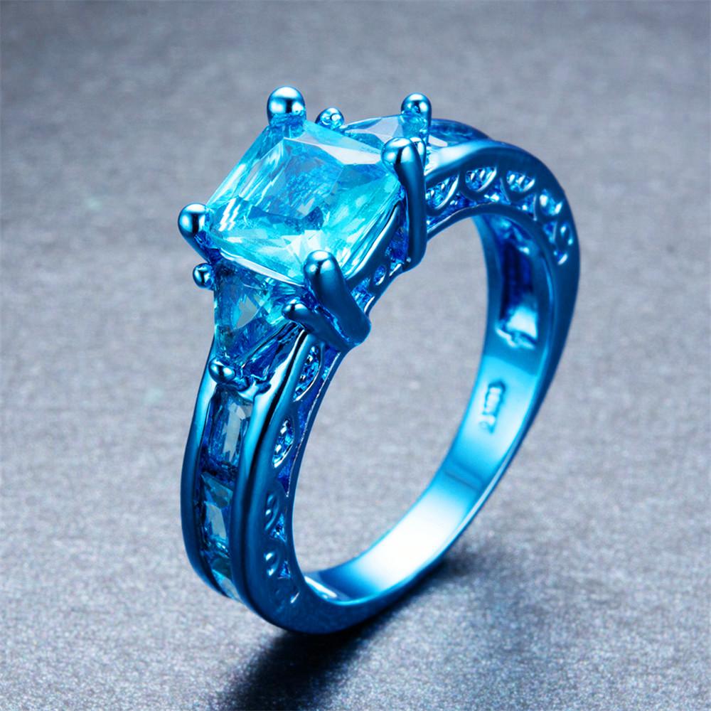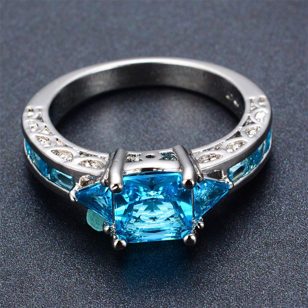 Women Geometric Blue Topaz Ring Earrings Jewelr...