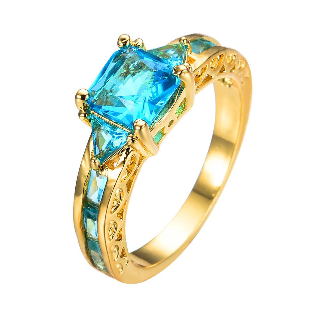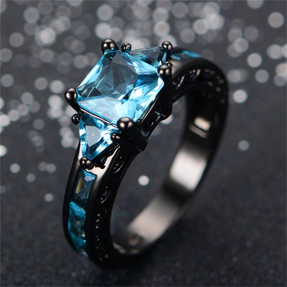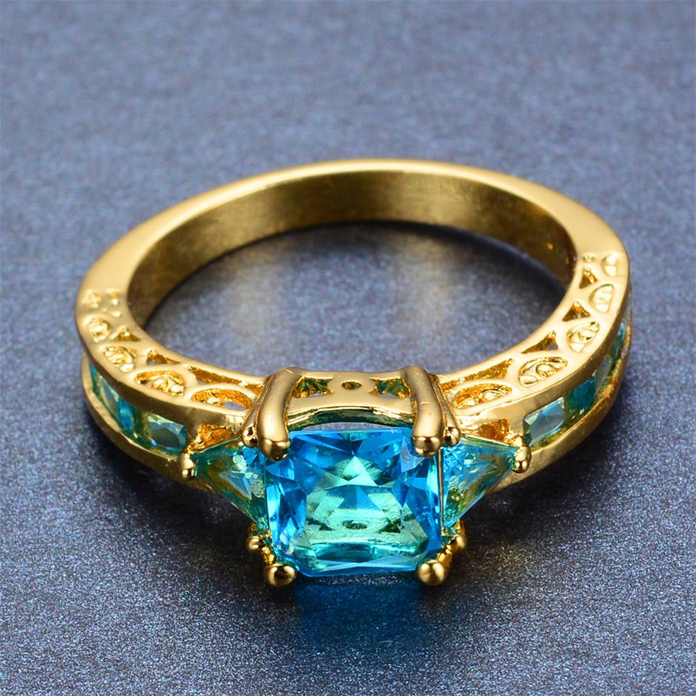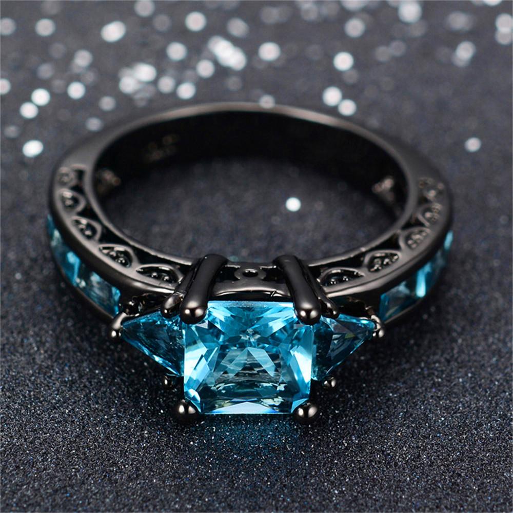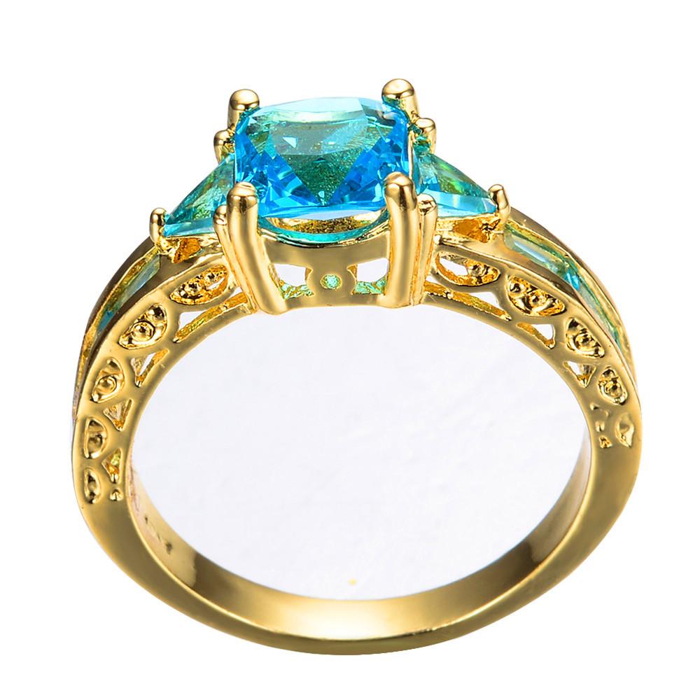 Women Geometric Blue Topaz Ring Earrings Jewelr...
