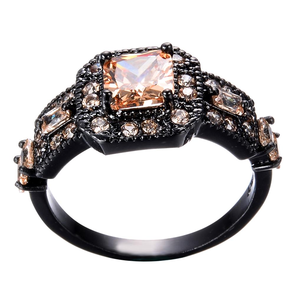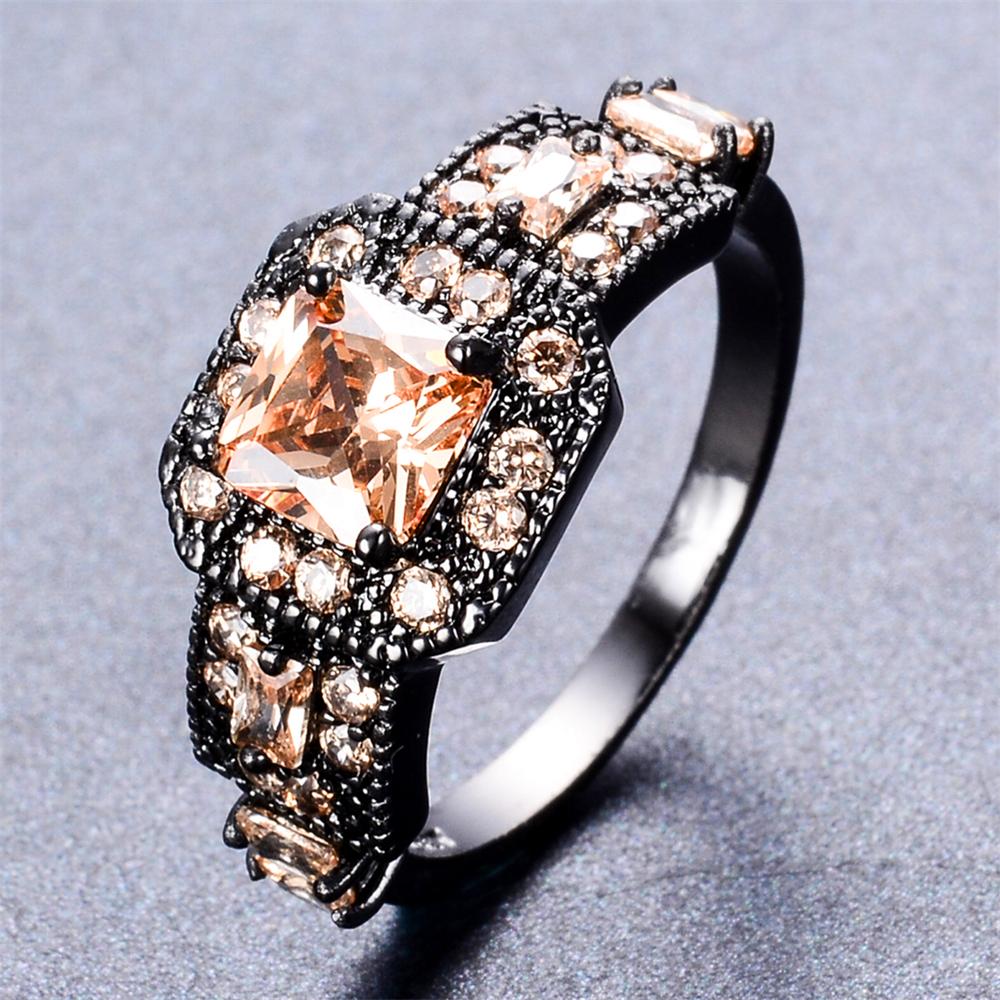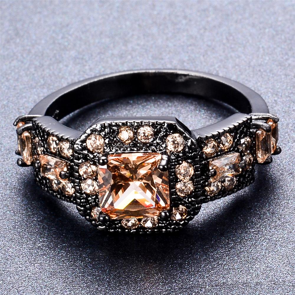 Women Champagne Geometric Topaz Ring Earrings J...