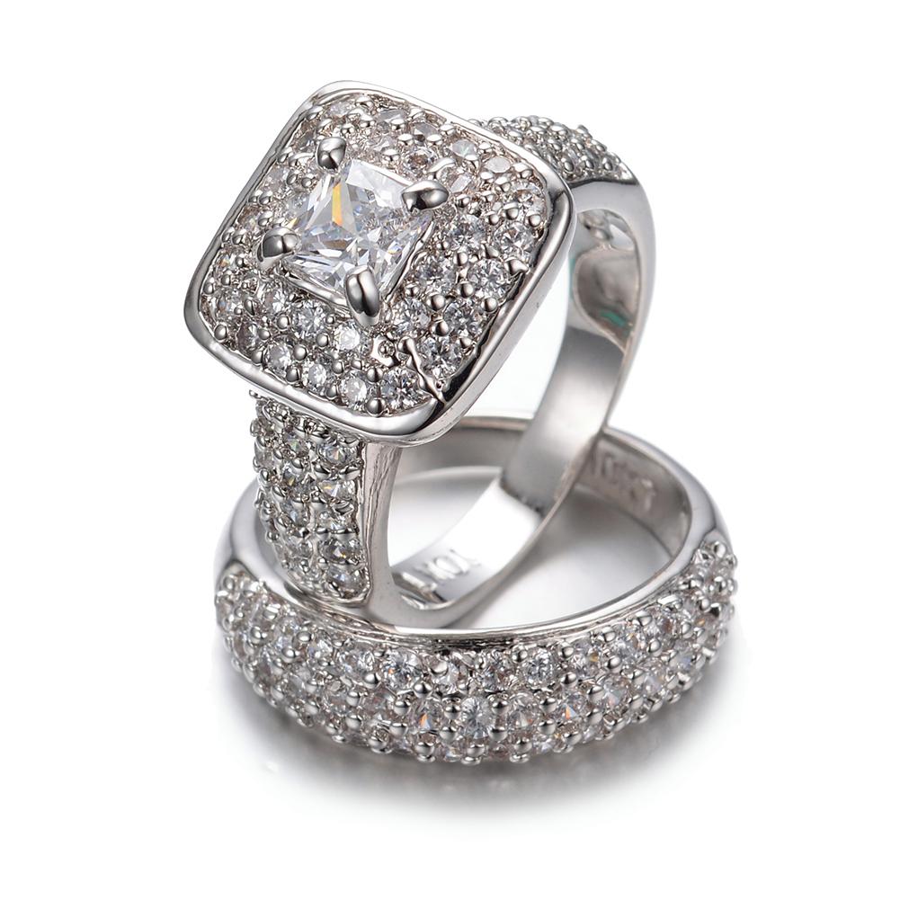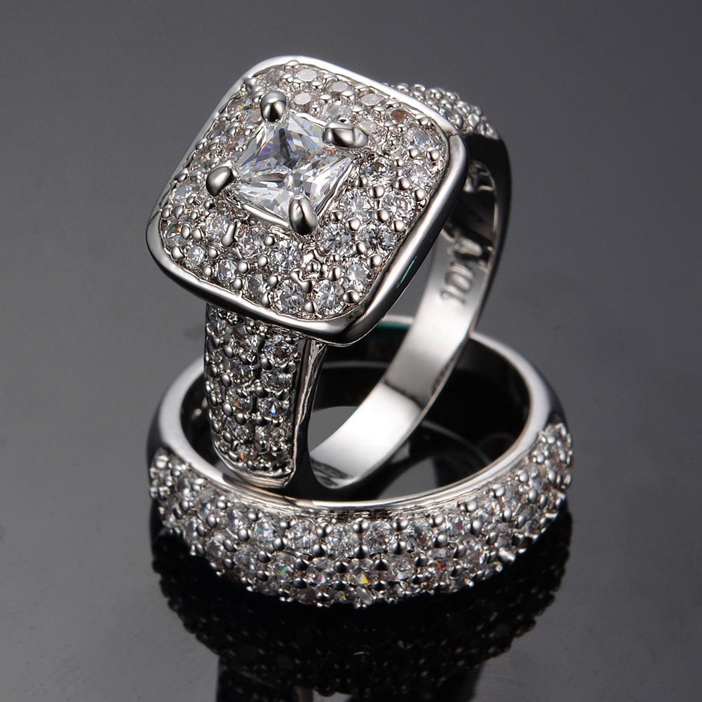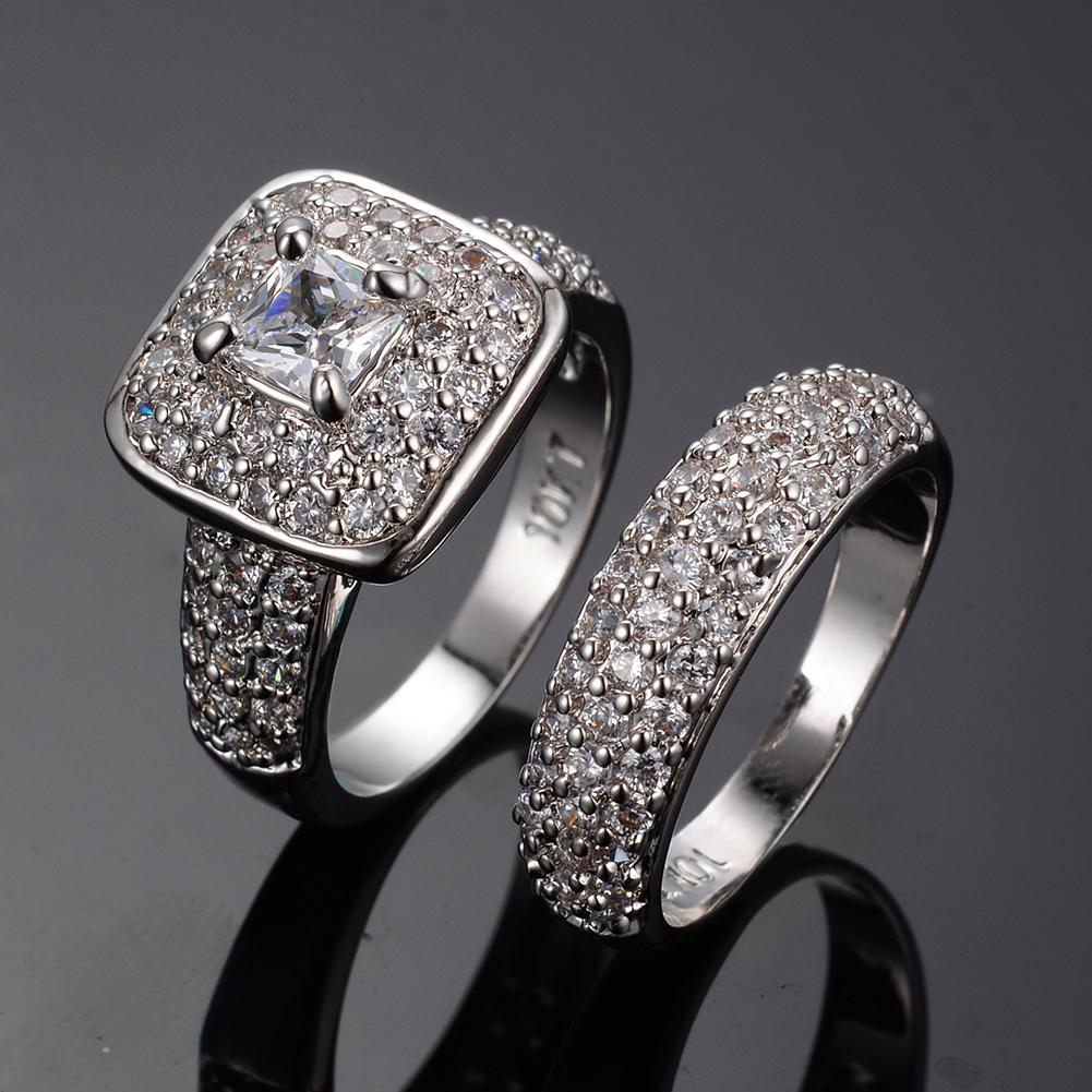 Women White Geometric Wedding Ring Set